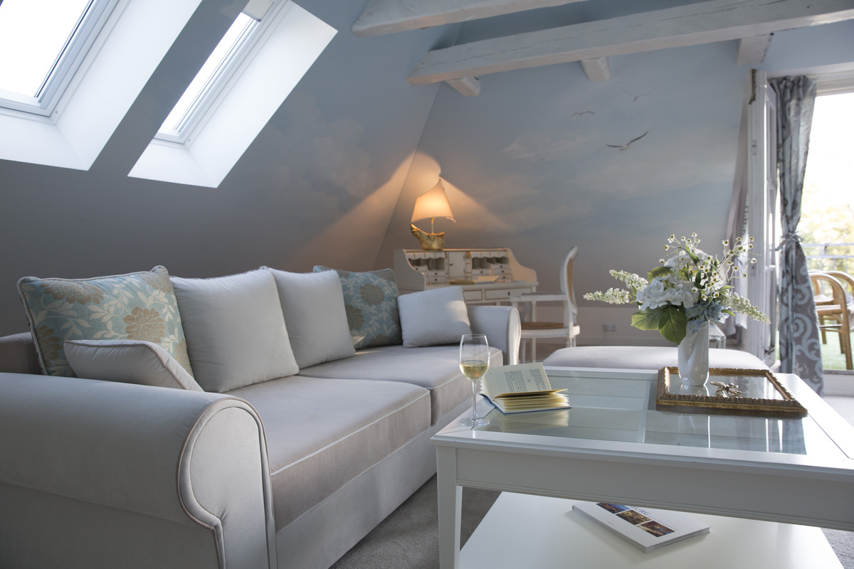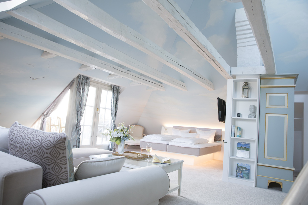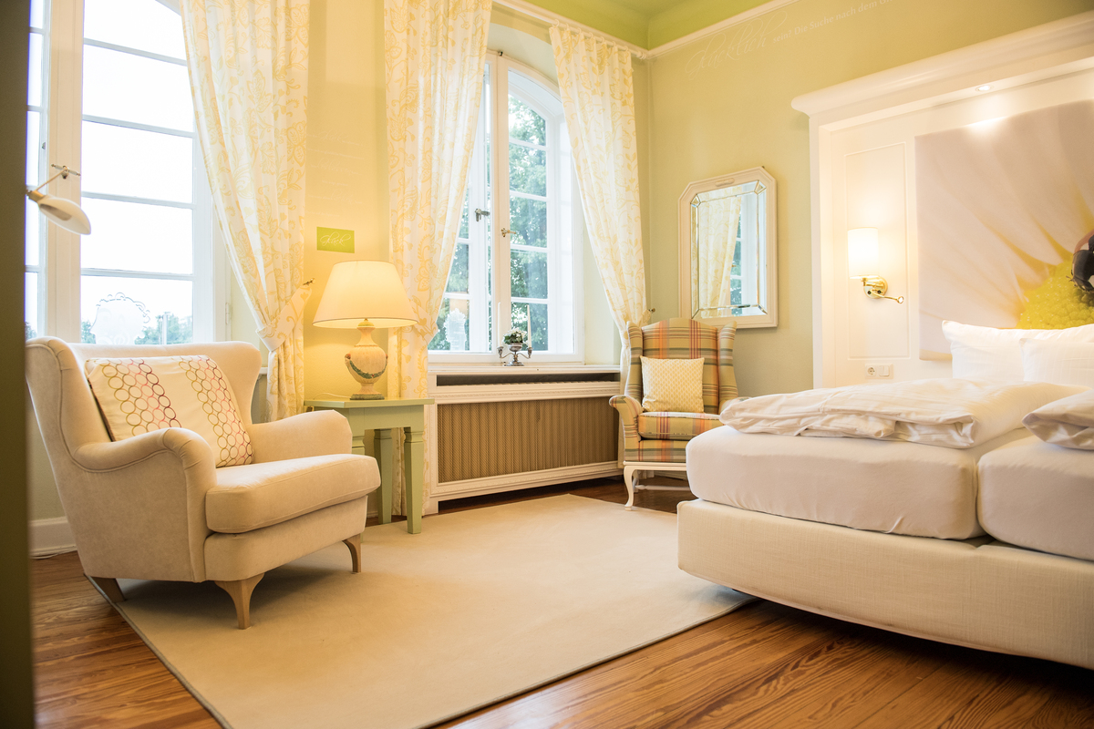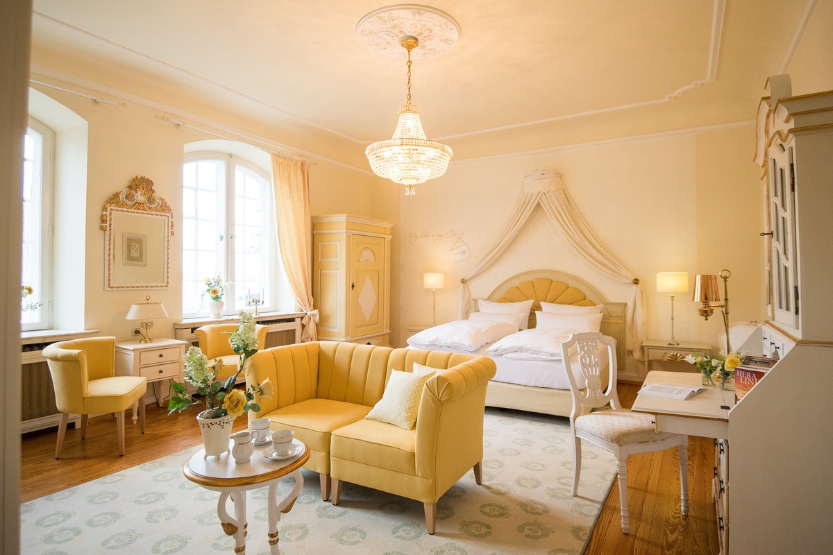 Wohn-/Schlafraum mit Kitchenette und Arbeitsplatz, kleiner Balkon, großes Bad mit begehbarer Dusche, Badewanne, Bidet