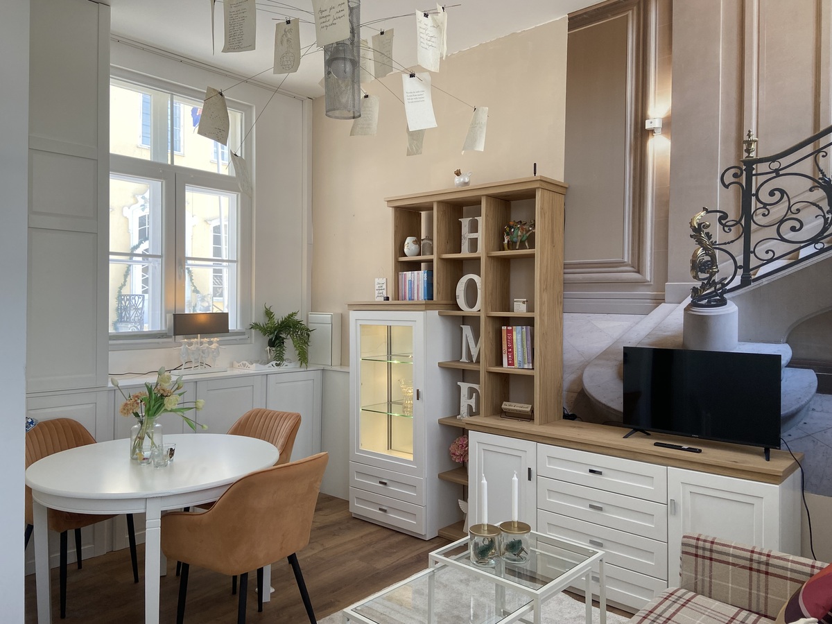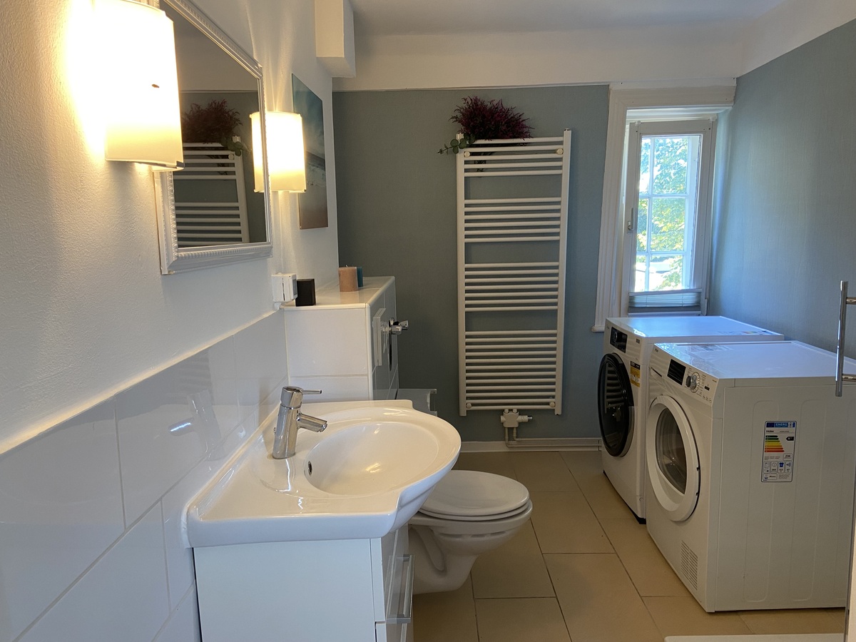 Wohnzimmer, Schlafzimmer, Küche, Duschbad mit WaMa + Trockner