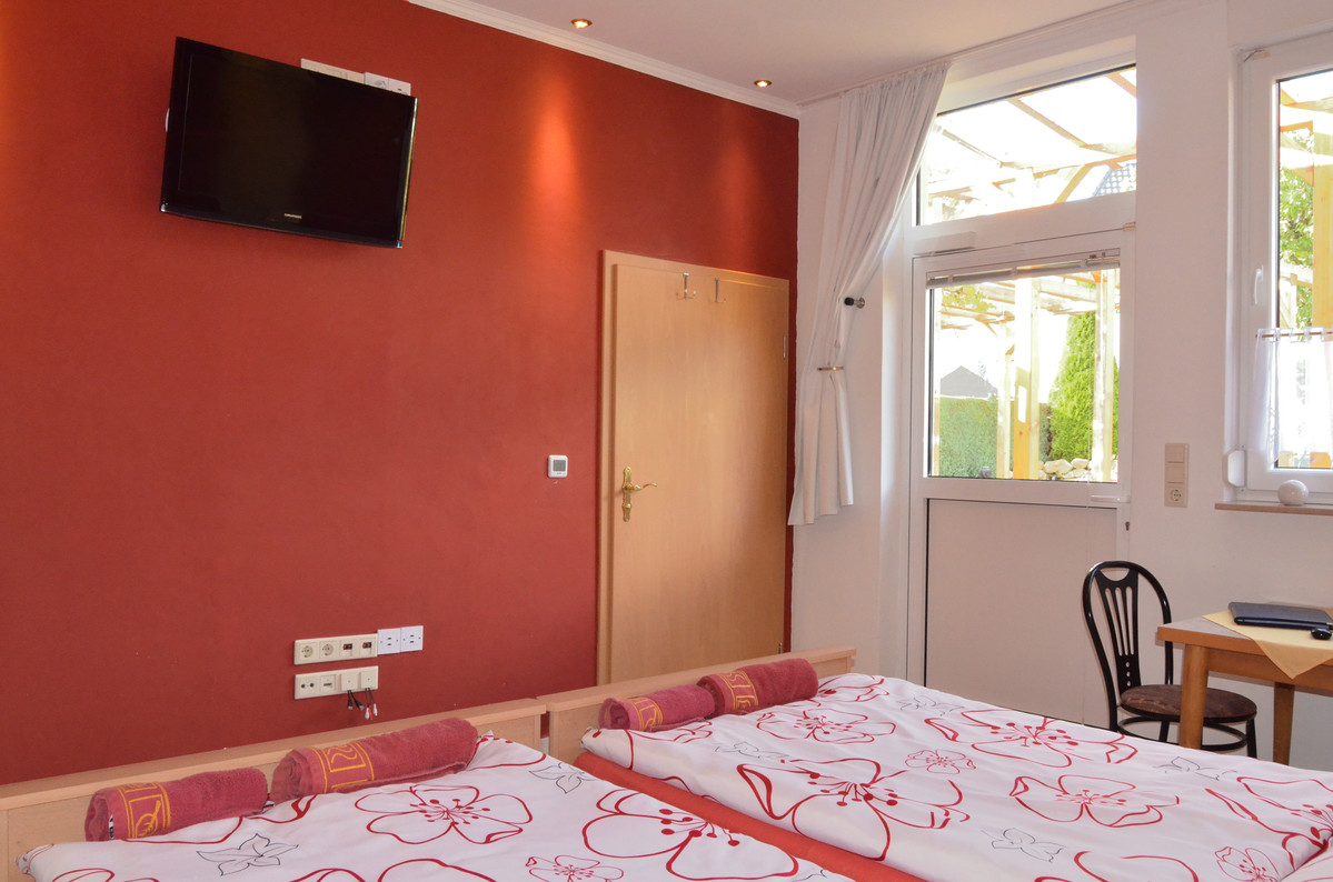 Das Doppelzimmer Nr. 4 im EG hat einen eigenen Zugang zum Garten der auch als Haupteingang genutzt werden kann ohne durch das ganze Haus zu müssen.